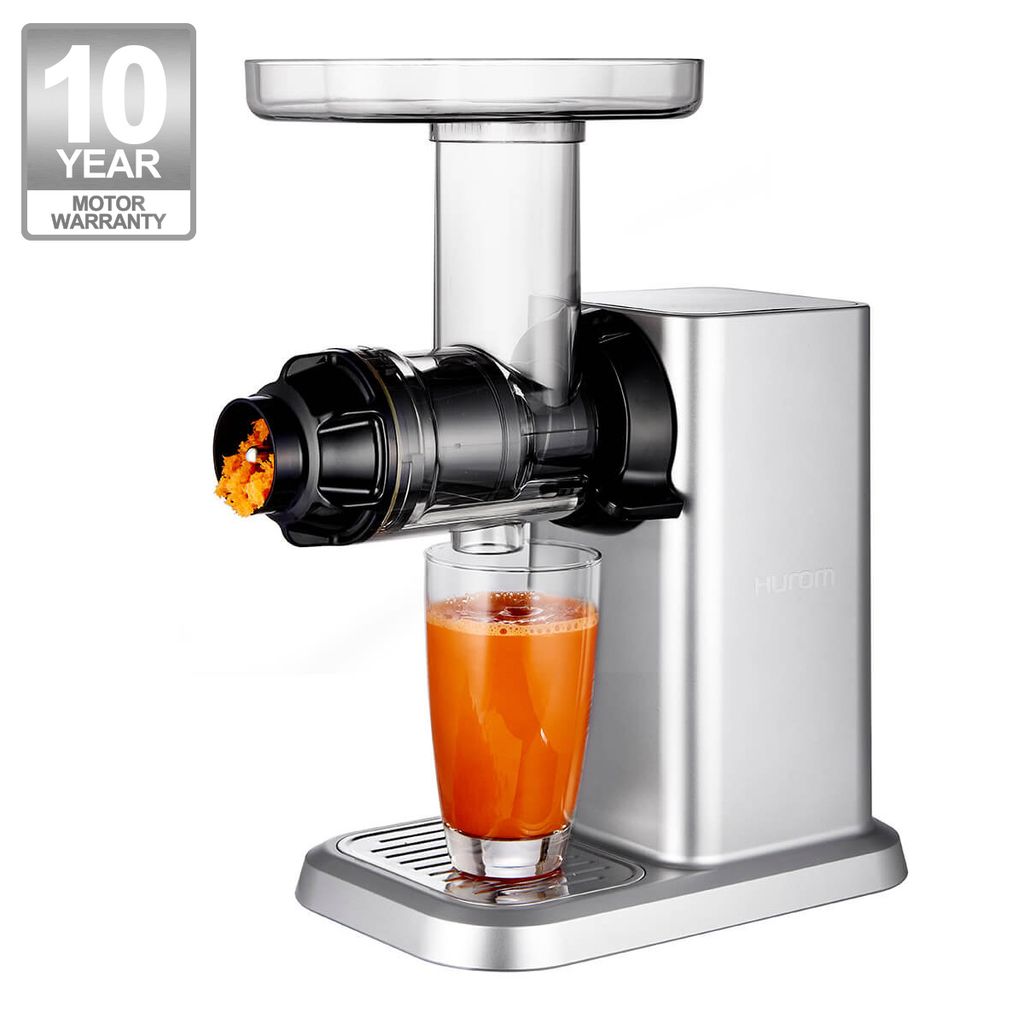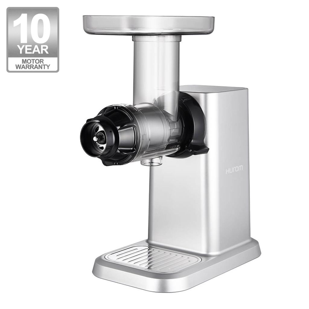Effektiv juicepress från HUROM i elegant silver, perfekt för frukt och grönsaker. Flera funktioner och 10 års motorgaranti.