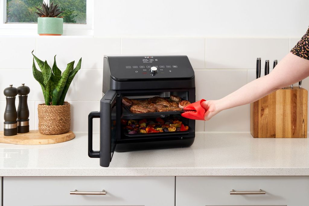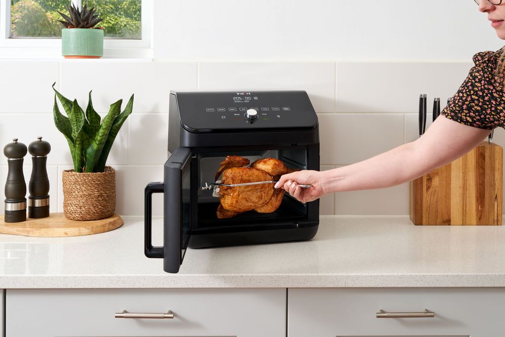 Upplev kombinationen av en traditionell ugn och en airfryer i en kompakt, kraftfull enhet. Med Instant Airfryer-Ugn 13 L lagar du allt från saftiga rotisserikycklingar till krispiga pommes och nybakade kakor – med kortare tillagningstid, mindre olja och lägre energiförbrukning.