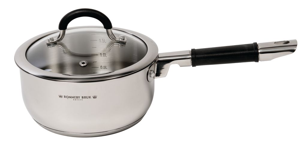Ronneby Bruk, Rostfri Kastrull 2 L med Ventilerat Glaslock – Silikonhandtag