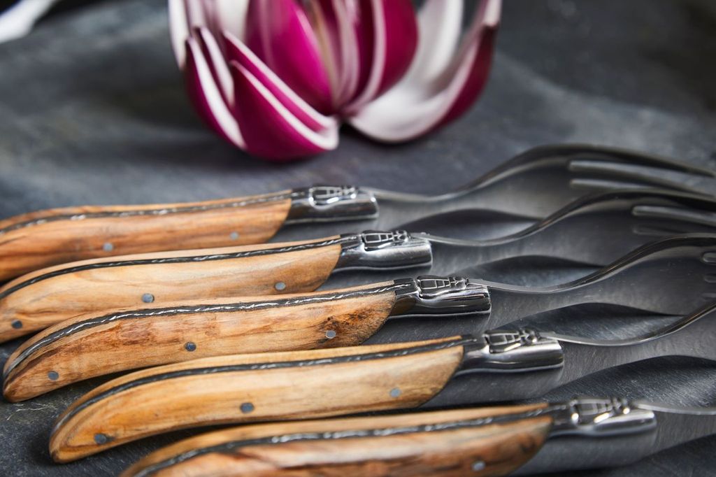 Laguiole By Hâws grillgafflar 6-pack – elegant och hållbart med handtag i olivträ