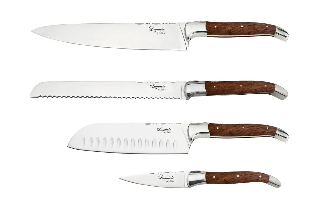 Laguiole By Hâws knivset med santokukniv, kockkniv, brödkniv och örtkniv med handtag i rosenträ