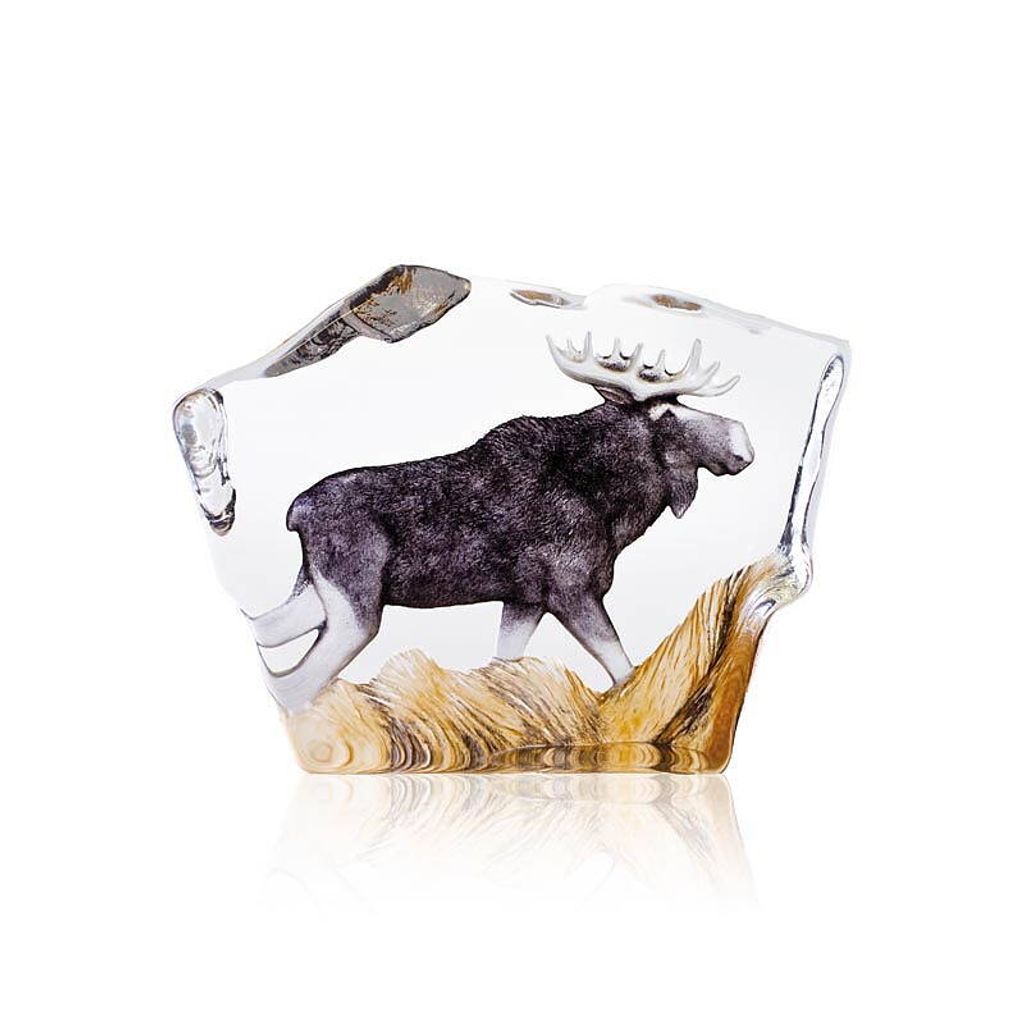 Handgjort kristallblock med älgmotiv, målat med organiska färger. Perfekt för samlare och naturälskare.