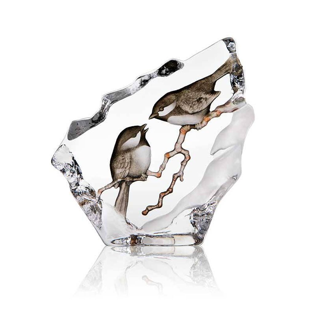 Blocket är gjutet i kristall, sandblästrat, graverat och handmålat – en kombination som skapar liv och djup i motivet. Varje exemplar är tillverkat för hand i Sverige och levereras i en elegant presentkartong.