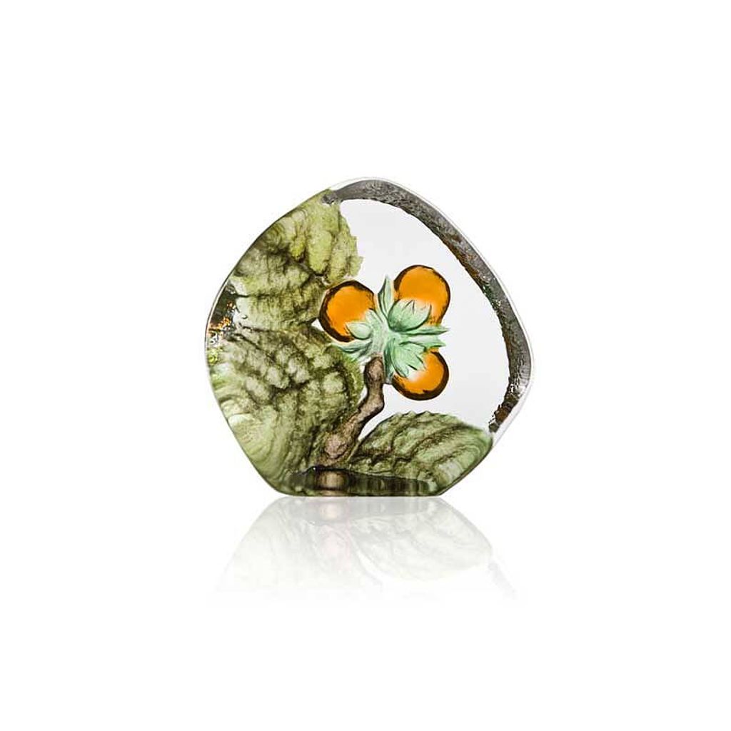 Fördjupa dig i skönheten med Målerås Hassel Kristallblock, en noggrant handgjord skapelse från Sverige. Detta unika kristallblock visar ett sandblästrat och målat motiv av hassel, vilket ger en känsla av naturens elegans i ditt hem. Motivet, målat med organiska färger, framhäver livfulla gröna och orange nyanser, medan den kristallklara bakgrunden skapar en förtrollande ljuseffekt.