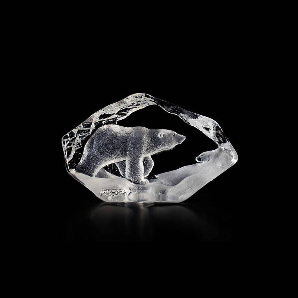 Unikt handgjort kristallblock med graverat isbjörnsmotiv, designat av Mats Jonasson.