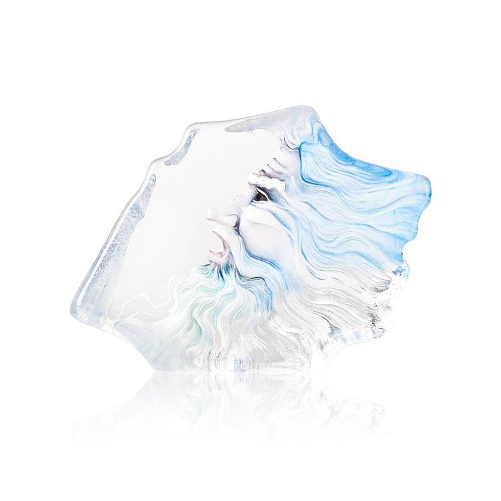 Handgjord kristallskulptur av grekiska havsguden Poseidon, i blått glas, designad av Mats Jonasson.