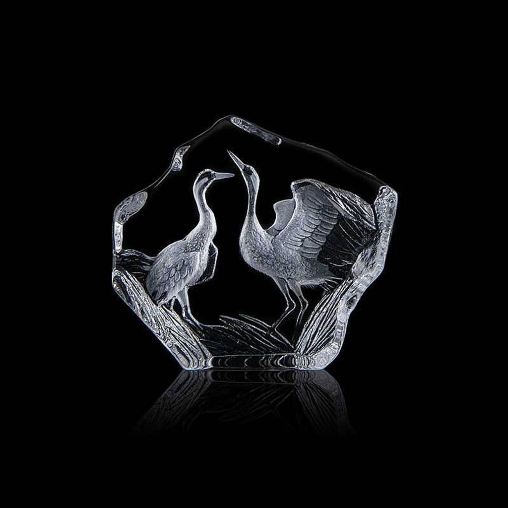 Designen av Mats Jonasson fångar tranornas elegans och skönhet, och det klara kristallen framhäver deras graciösa former. Blocket mäter 160x140 mm och väger 1.3 kg, vilket gör det till en imponerande och distinkt prydnad i alla rum.