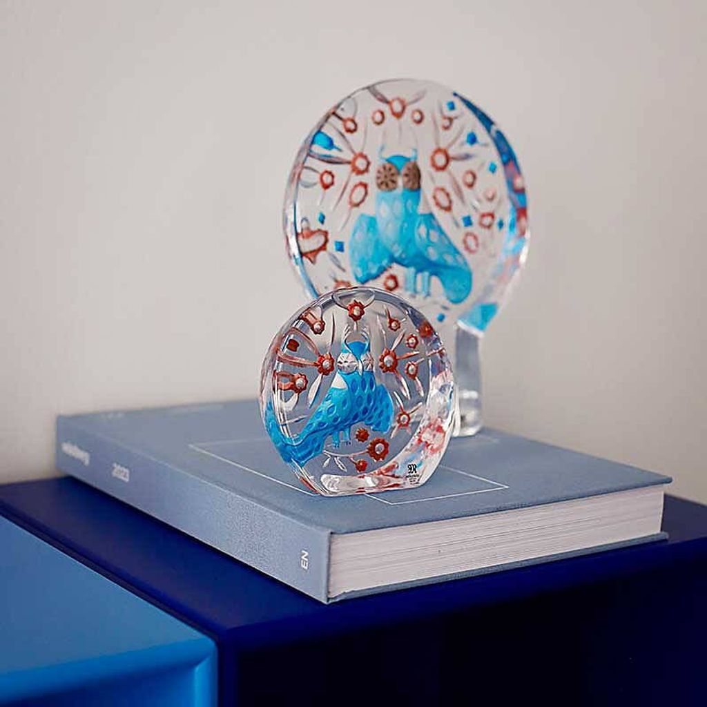 Fördjupa dig i den magiska världen av Målerås Glasbruk med denna handgjorda kristallskulptur av en uggla. Designad av den internationellt erkände Klaus Haapaniemi, fångar denna skulptur essensen av svensk folklore och hantverksskicklighet. Varje detalj är noggrant utformad och dekorerad i klara blå och organiska färger, vilket säkerställer en unik och hållbar produkt.