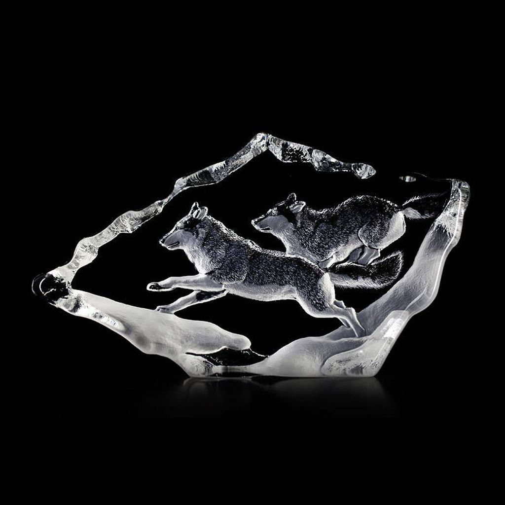 Gjutet kristallblock med graverat vargpar. Handgjord i Sverige av högsta kvalitet, designad av Mats Jonasson.
