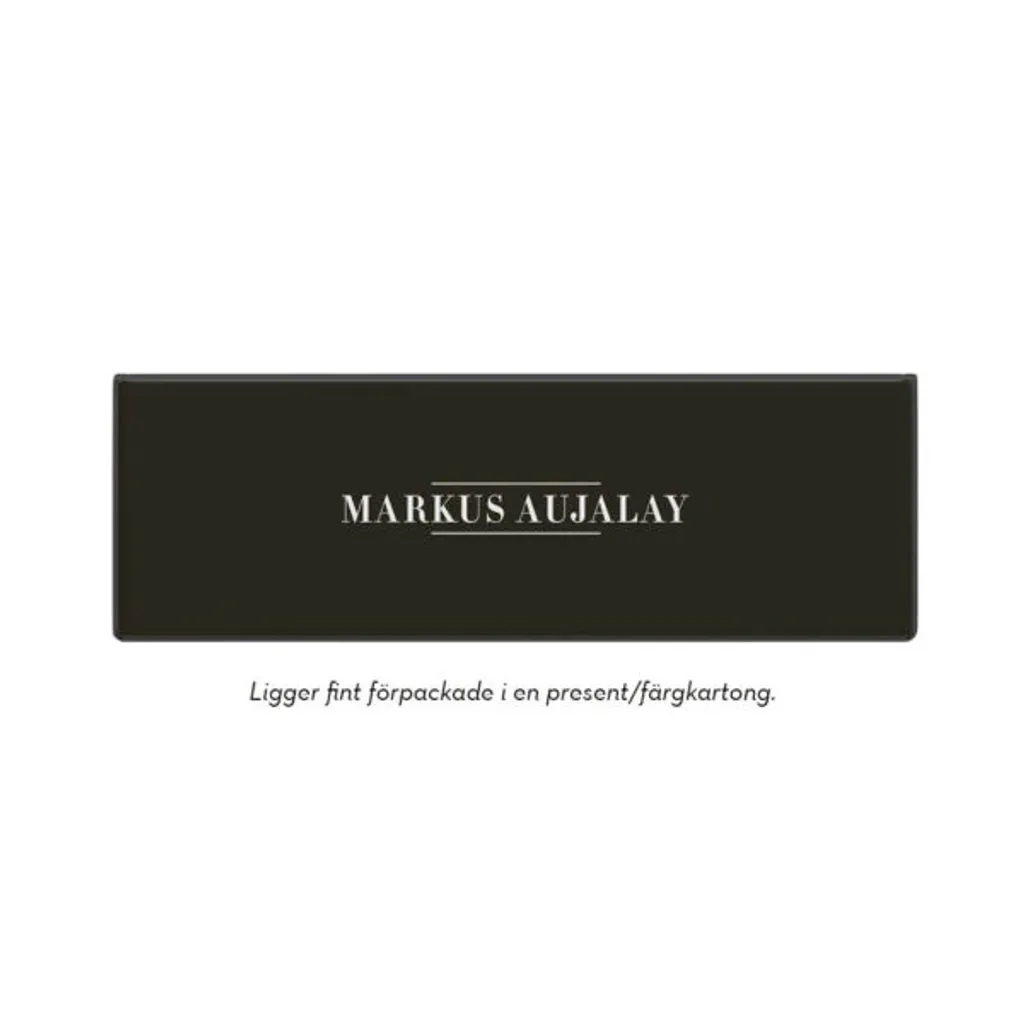 Varje kniv har ett svart, ergonomiskt handtag för ett bekvämt och säkert grepp. Knivbladet är dekorerat med Markus Aujalays eleganta emblem, vilket garanterar både stil och kvalitet. Setet levereras i en stilren present- och färgkartong, vilket gör det till en perfekt gåva.