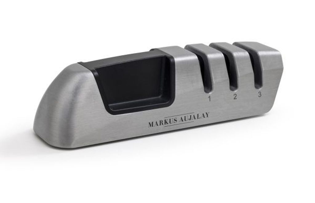 Upptäck Markus Aujalay Knivslip, den ultimata lösningen för att hålla dina knivar sylvassa. Med sin stilrena design i rostfritt stål och tre slipsteg (1, 2, 3) ger denna knivslip både effektivitet och elegans till ditt kök. Den är perfekt för både professionella och amatörkockar som vill ha precision i varje snitt. Knivslipen levereras i en elegant giftbox, vilket gör den till en utmärkt present för matlagningsentusiaster.