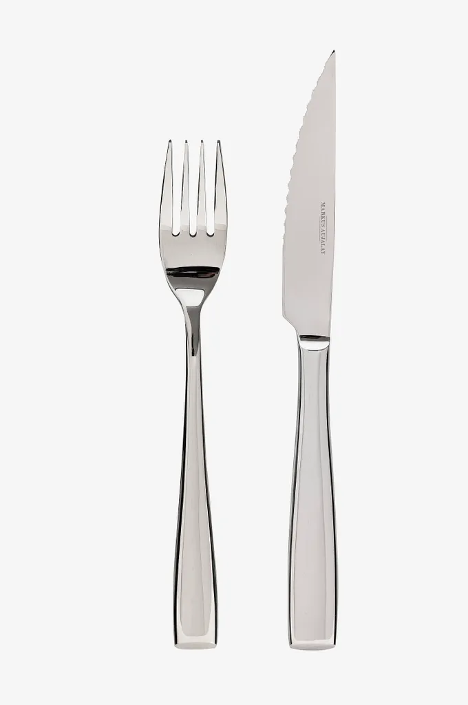 Upptäck Markus Aujalay Kött- & Grillbestick Signature, en uppsättning som kombinerar stil och funktionalitet. Dessa exklusiva bestick för 6 personer är tillverkade av högklassigt 18/10 stål, vilket garanterar hållbarhet och enastående kvalitet. Besticken har en elegant spegelpolish som ger en sofistikerad touch till varje dukning.