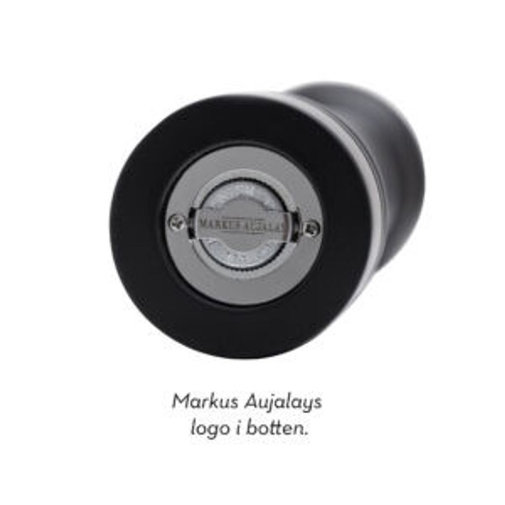 Markus Aujalay Pepparkvarn på 32 cm är en elegant och funktionell tillgång till ditt kök. Med sin matta svarta finish ger den ett stilrent intryck som passar alla inredningar. Kvarnen är utrustad med en mekanism av högsta kvalitet i carbon stål, vilket säkerställer en jämn och effektiv malning av peppar. På botten av kvarnen finner du Markus Aujalays logotyp, som vittnar om dess exklusivitet och kvalitet. En perfekt present eller ett lyxigt tillskott till ditt eget kök.