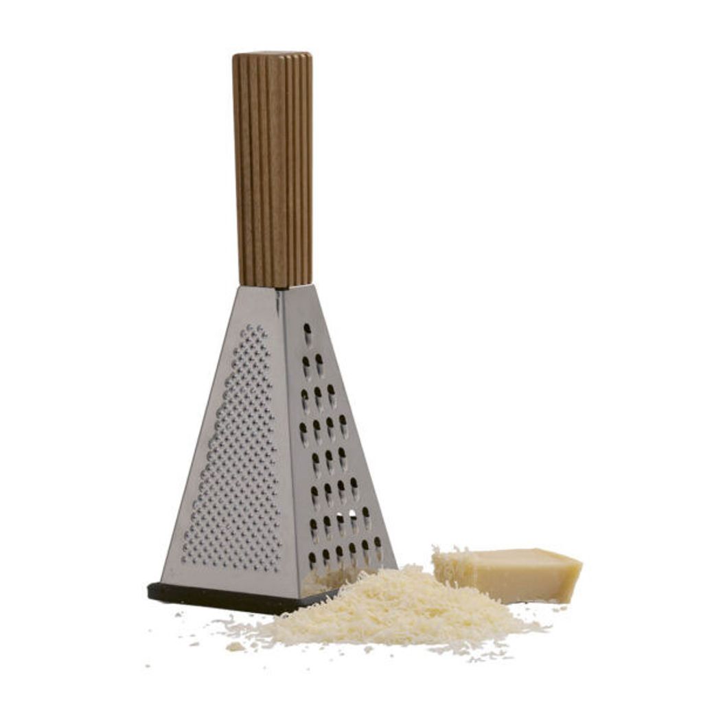 Elegant rivjärn med trähandtag och rostfri design. Perfekt för köket.