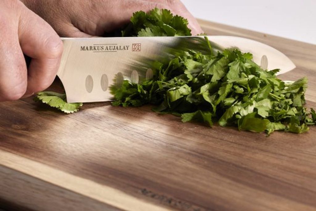Den Markus Aujalay Skärbräda i vacker acacia är ett måste för varje kök. Med sin naturliga träfärg och slående ådringar, tillför den en rustik och elegant touch till matlagningen. Skärbrädan har praktiska infrästa handtag på kortsidorna, vilket gör det enkelt att lyfta och flytta den, även när händerna är upptagna med matlagning.