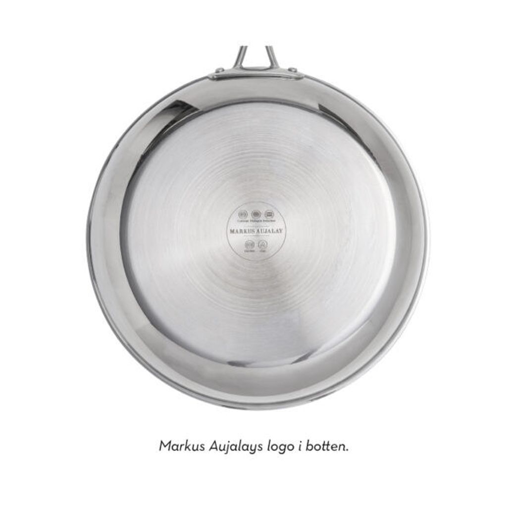 Stekpannans eleganta design med Markus Aujalay-logga i botten gör den till ett stilrent tillskott i ditt kök. Investera i denna stekpanna för en optimerad matlagningsupplevelse som håller i längden.