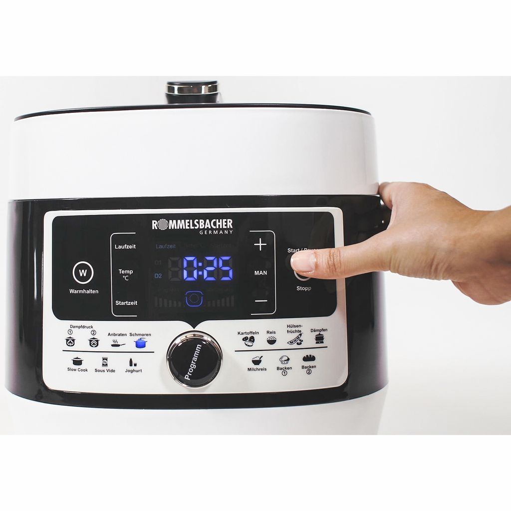 Spara tid, plats och energi med Rommelsbacher MD 1000 – en kraftfull 9-i-1 multikokare och tryckkokare som klarar allt från ångkokning till bakning, sous vide och långkok. Med 14 automatiska program, justerbar temperatur och två ångtrycksnivåer blir matlagningen både enkel och exakt. Perfekt för grytor, soppor, ris, fisk, kött, yoghurt – och till och med bröd!