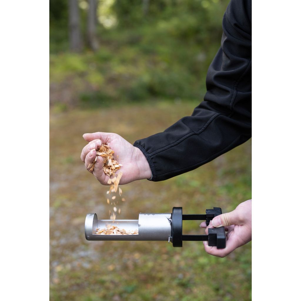 Utdragbart rökspånstråg med påfyllnadscylinder – rök utan avbrott