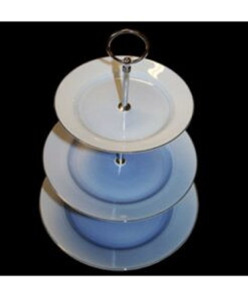 Gustavsberg NATUR Blåbärsblå kakfat med tre våningar och dekorativt bräm förvandlar varje fikastund till en visuell njutning. Med sin levande blåbärsblå färg – inspirerad av den svenska naturen – lyfter detta serveringsfat allt från nybakade bullar till eleganta petit fours. Det vackra brämet ger varje våningsfat en mjukt inramad känsla, och skapar en harmonisk kontrast mellan form och funktion.