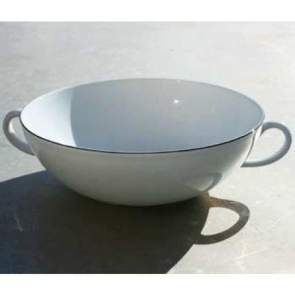 Tillverkad i robust benporslin tål denna skål både diskmaskin, mikrovågsugn och vardagens alla utmaningar. De två öronen gör den smidig att hantera – oavsett om du serverar en varm måltid eller använder den som uppläggningsskål. Den runda formen ger en mjuk och inbjudande siluett, medan den glaserade ytan ger en lättskött och hållbar finish. Ett hållbart val för medvetna hem med känsla för både form och funktion.