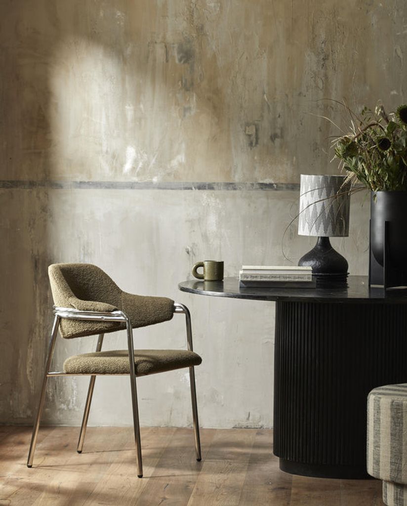 Upplev elegans och komfort med Nordal ALBERT stol. Denna vackra stol kombinerar en stilren metallram med mjukt grönt teddytyg för en tidlös design som passar perfekt vid matbordet eller som en statement-möbel i ditt hem. Med sitt bekväma sittdjup och praktiska armstöd är ALBERT idealisk för både vardag och fest.
