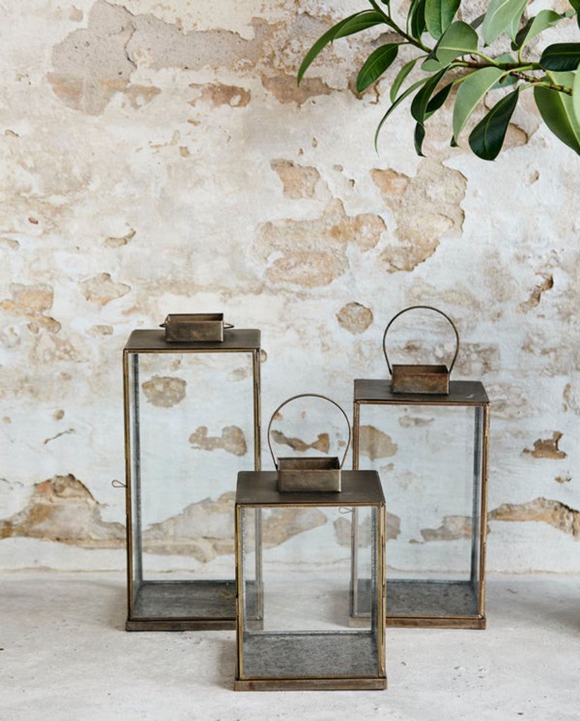 Lyktan är designad för både pelarljus och värmeljus, och sprider ett varmt och inbjudande sken när mörkret faller. Den är inte bara praktisk utan även ett stilfullt inslag i din inredning. Trots att den kan användas utomhus, rekommenderas det att förvara den inomhus för att bevara dess vackra utseende. Vid exponering utomhus utvecklar den en patina som ger en rustik charm.