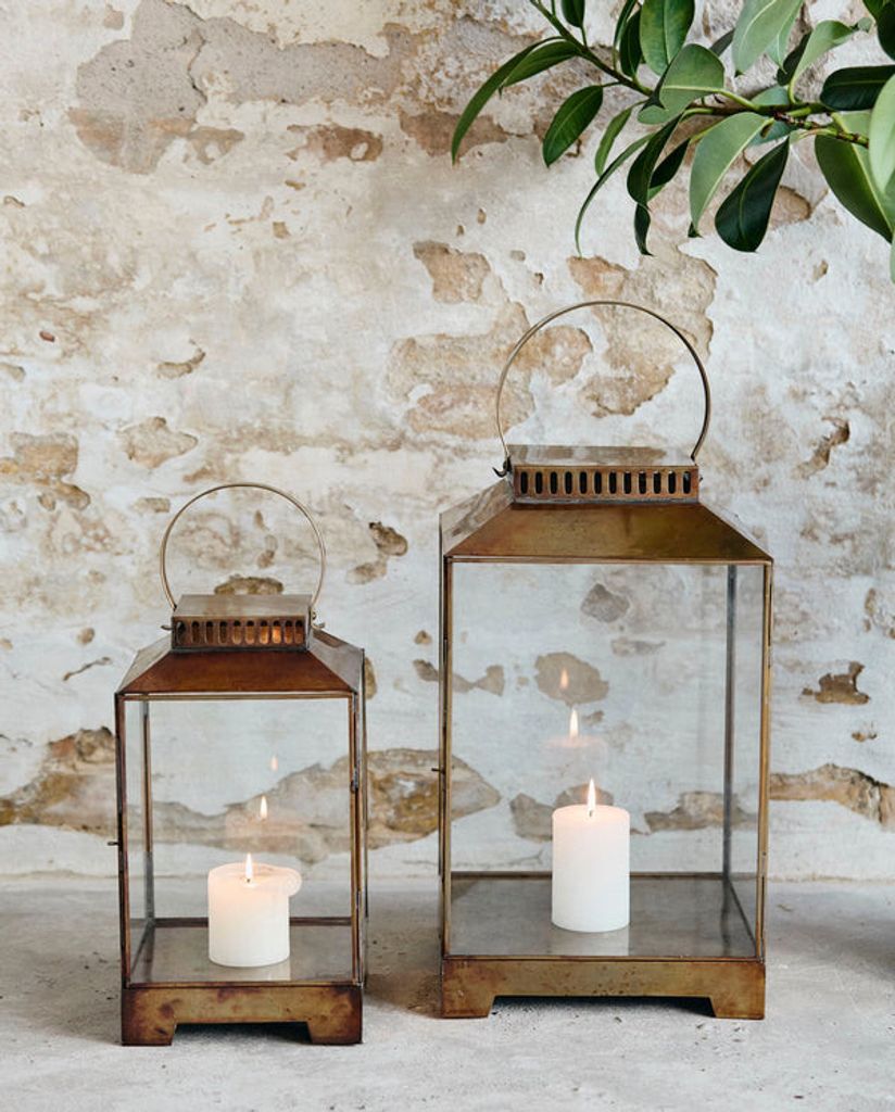 Lyktan är utmärkt för att skapa en varm och inbjudande atmosfär, oavsett om du fyller den med ljus eller andra dekorativa föremål. En sida kan öppnas för enkel åtkomst. Vid utomhusbruk, notera att mässingen kan patineras och utveckla en rustik charm.