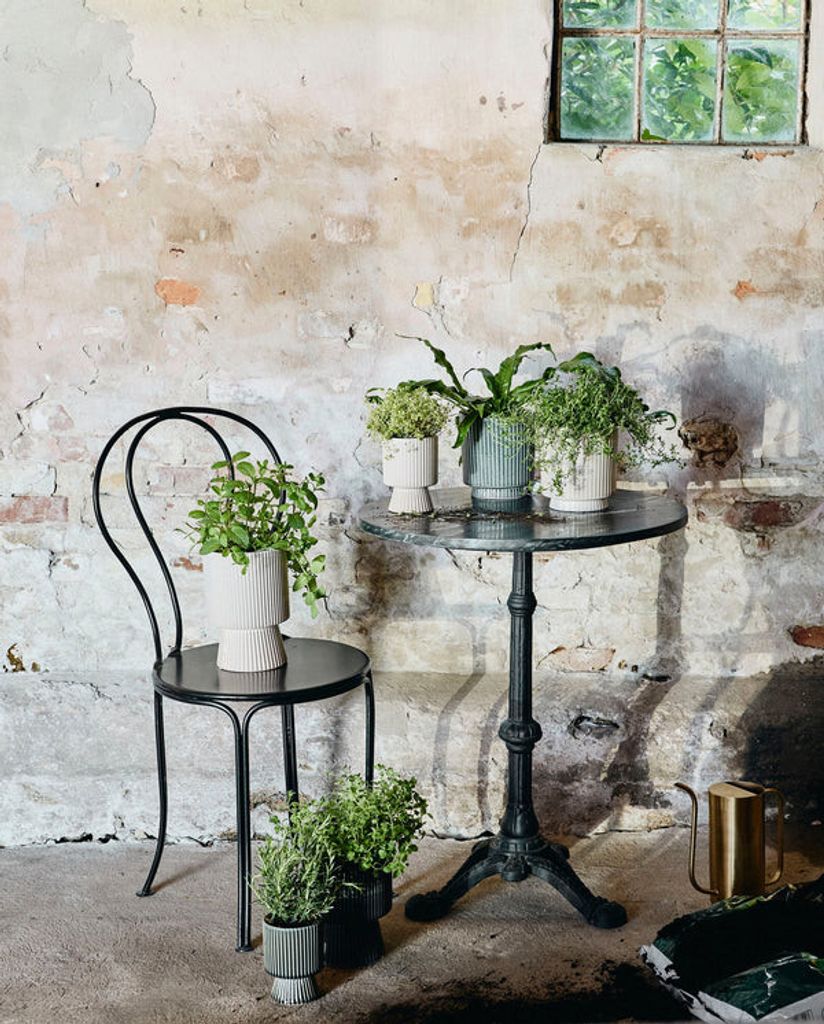 Detta eleganta cafébord från Nordal kombinerar en svart marmorskiva med robusta järnben, vilket skapar en tidlös och rå estetik. Bordet är perfekt för både inomhus- och utomhusmiljöer, men bör skyddas mot fukt för att undvika rost.