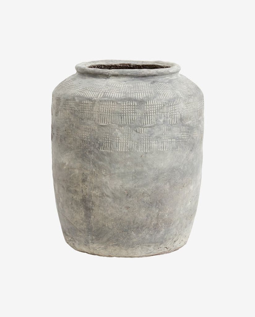 Ge ditt hem en stilfull uppgradering med Nordal CEMA Kruka XL, Grå. Denna vattentäta kruka är designad för inomhusbruk och har en unik rå look som ger karaktär till vilket rum som helst. Med sin delvis handgjorda produktion innebär det att varje kruka är unik med oregelbundenheter och variationer i färg och finish, vilket bidrar till dess charm.