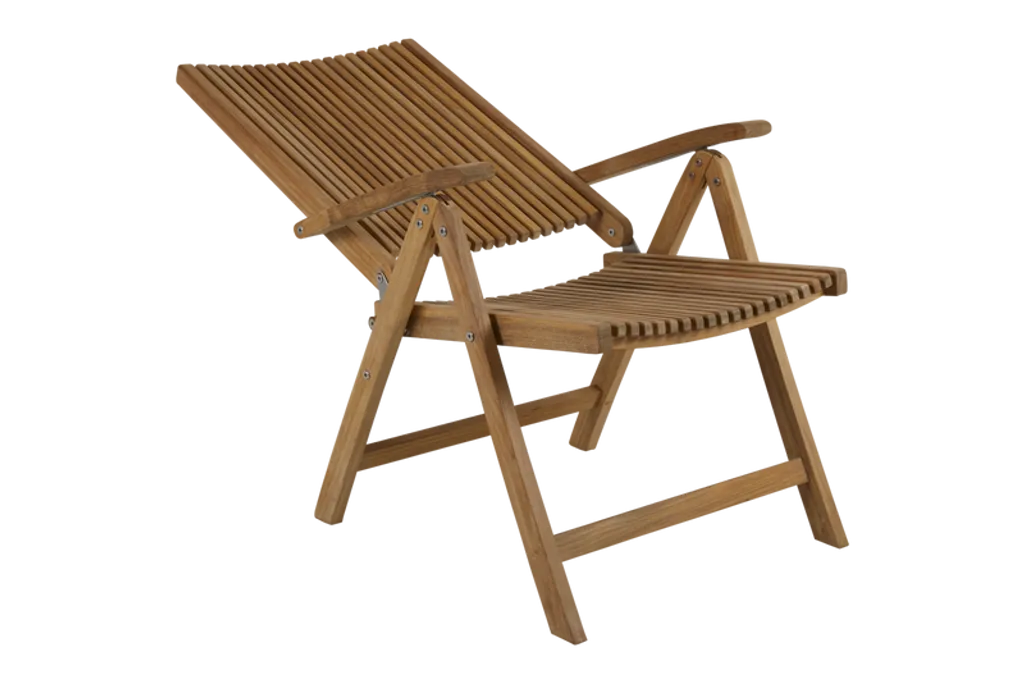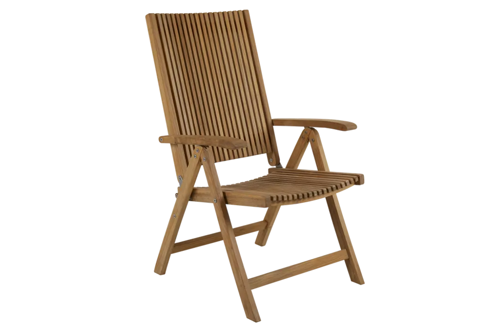 Elegant och bekväm positionsstol av högkvalitativ teak. Perfekt för den stilrena uteplatsen.