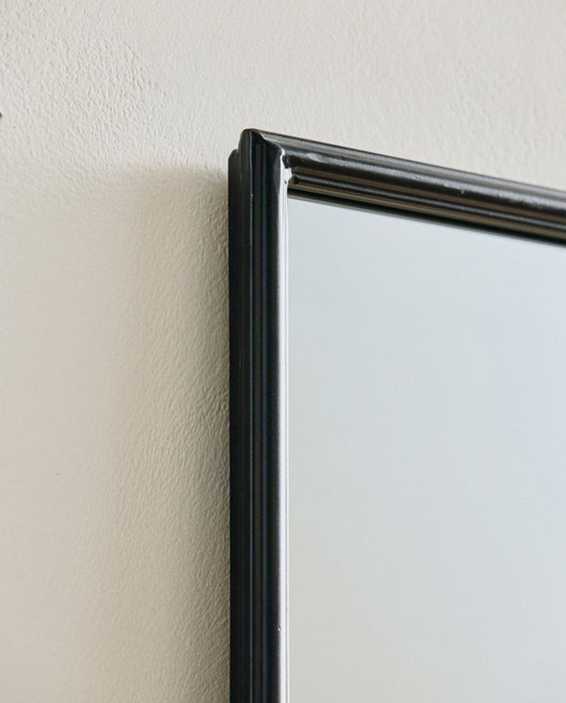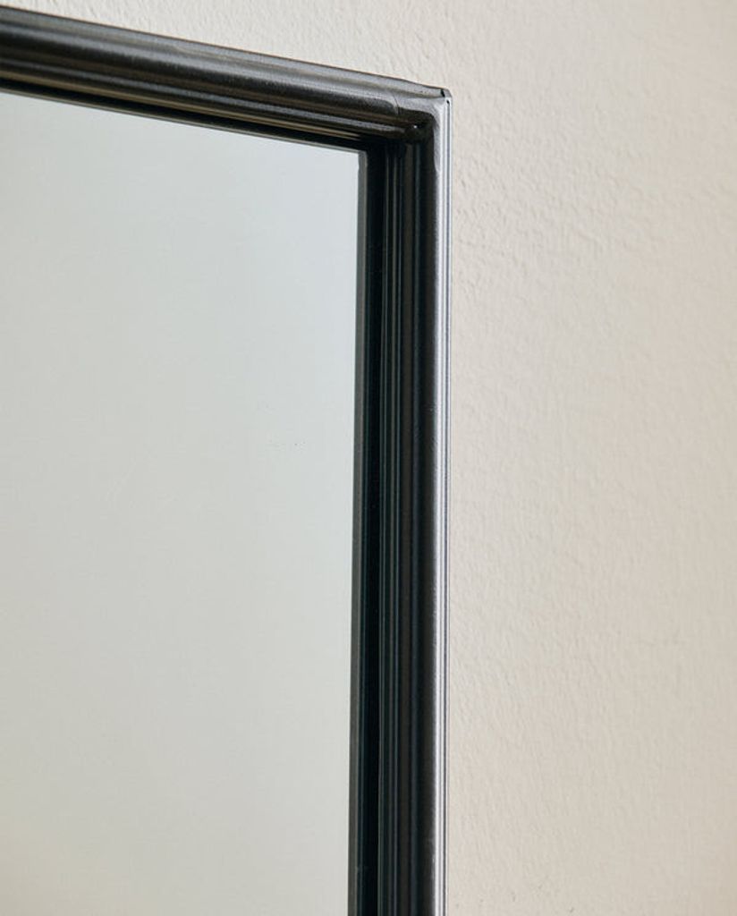 Elegant svart järnspegel med antik finish för en industriell touch. Kan hängas vertikalt.