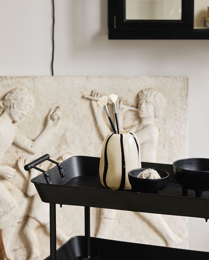 Njut av den perfekta kombinationen av funktionalitet och stil med Nordal FULDA Rullbord i Järn. Med sin råa och industriella look är detta rullbord ett utmärkt tillskott vid ditt matbord för att förvara flaskor, glas och servetter. Varje bord är delvis handgjort, vilket gör varje exemplar unikt med sina oregelbundenheter och färgvariationer. Den svarta finishen och robusta järnkonstruktionen ger intryck av styrka och hållbarhet, medan hjulen tillför praktisk rörlighet.
