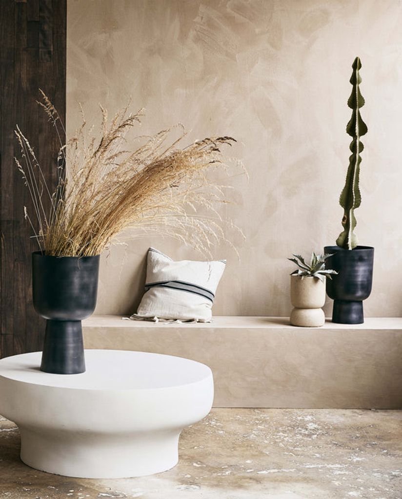 Upplev den tidlösa elegansen hos Nordal GALOA planteringskruka i storlek L, designad i en djup antracitfärg. Tillverkad av högkvalitativ aluminium, denna kruka erbjuder ett industriellt utseende med rena linjer som låter dina växter vara i fokus. Med sin minimalistiska och sofistikerade design, är GALOA krukan ett utmärkt val för att tillföra en naturlig känsla och värme till ditt hem.