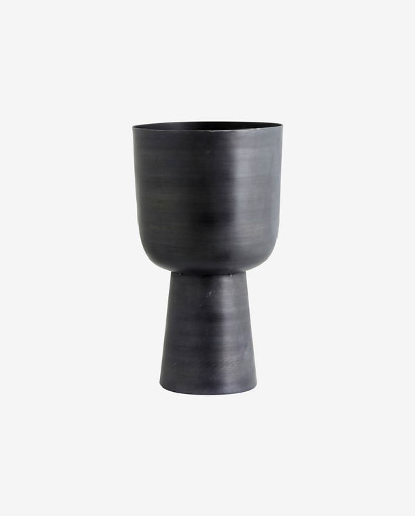 Elegant och minimalistisk kruka i antracit, tillverkad i aluminium för inomhusbruk.