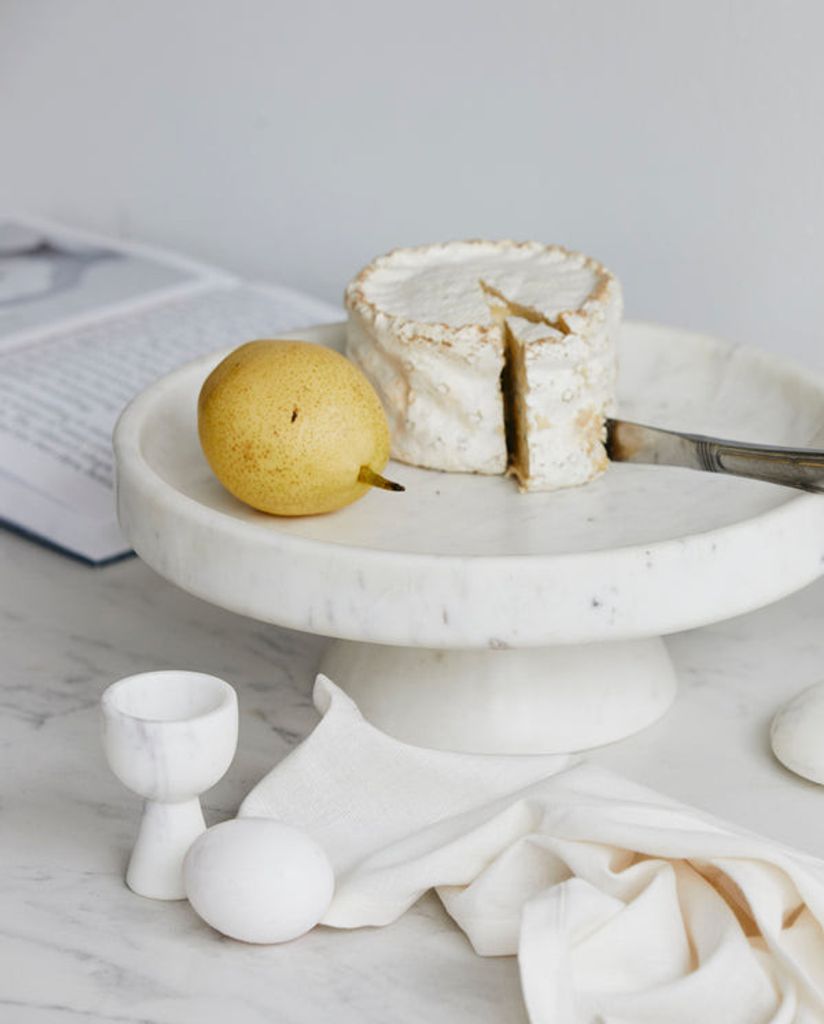 Elegant tårtfat i vit marmor, perfekt för stilfull servering och matchar våra andra marmortillbehör.