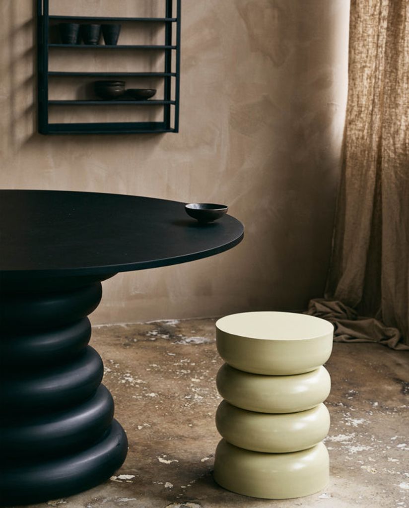 JUBBA sidobordet från Nordal är en elegant blandning av stil och funktion. Den ljusgröna färgen ger en frisk och modern känsla, perfekt för alla typer av inredningar. Bordet är tillverkat i robust järn med en hållbar pulverlackerad yta. Den organiska, cylindriska formen gör det till ett blickfång i rummet.