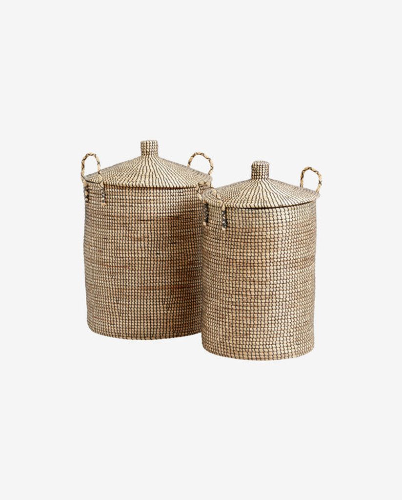 Förvandla din förvaring med Nordal LAUDY tvättkorg, ett vackert set om två korgar i naturliga och stilrena toner. Dessa handgjorda korgar är tillverkade av hållbart sjögräs, accentuerat med eleganta svarta PE-snören som ger en modern touch. Perfekta för att förvara tvätt, leksaker eller andra hushållsartiklar, dessa korgar kombinerar funktionalitet med estetik.
