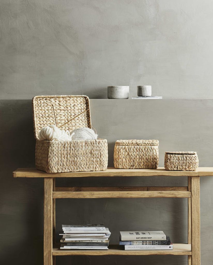 Handgjorda förvaringslådor i naturmaterial. Perfekta för stilren förvaring och rustik dekoration.