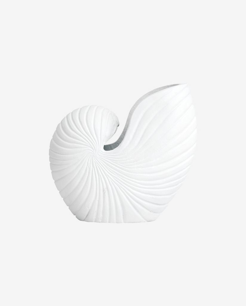 Nordal RAKITU blomkruka är en elegant och unik inredningsdetalj som förhöjer alla rum. Med sin snäckskalsformade design i vit metall, erbjuder denna kruka både funktion och stil. Dess vita finish ger ett rent och modernt intryck, medan den lackade insidan säkerställer vattenbeständighet för att skydda både krukan och dina växter.