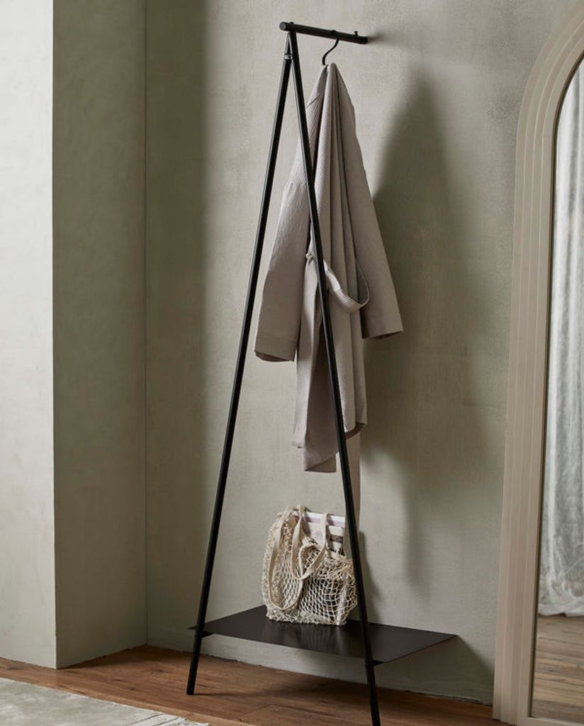 Nordal RAVI klädhängare är en perfekt lösning för dig som söker funktion och stil i ett. Tillverkad av järn med en svart pulverlackering, ger den ett elegant och modernt intryck i ditt hem.