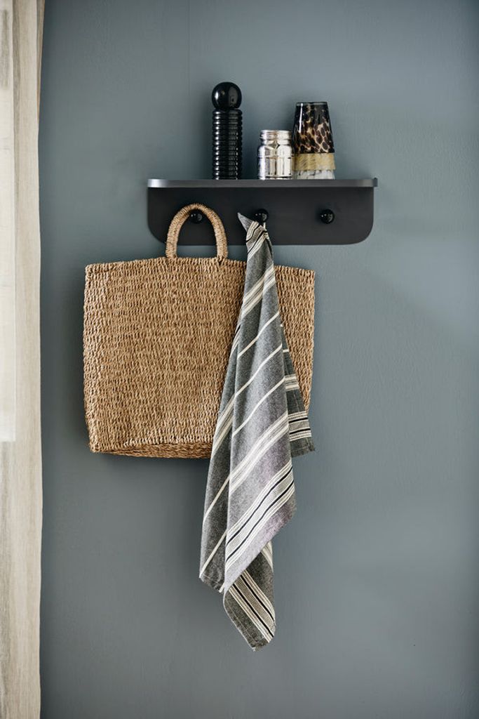 Med måtten 45 cm i längd, 13,5 cm i höjd och 12,5 cm i djup, erbjuder denna hylla både förvaring och stil. Den lilla kanten upptill säkerställer att dina objekt hålls säkert på plats. Varje krok, 4,5 cm i längd, är idealisk för att hänga allt från rockar och nycklar till handdukar och disktrasor. Med en maximal lastkapacitet på 5 kg, är denna hylla både robust och mångsidig.