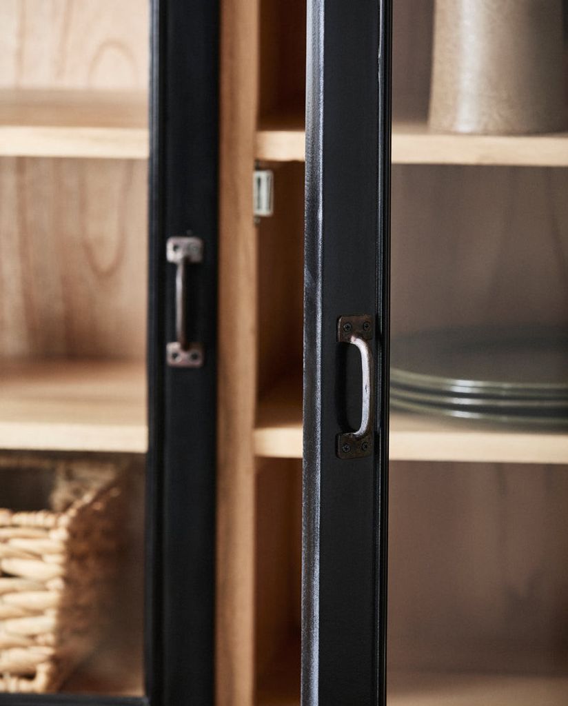 VIVA skåpet från Nordal är en sofistikerad kombination av modern design och klassisk stil. Med sin svarta stomme och två glasdörrar erbjuder skåpet en perfekt inramning för att visa upp dina mest älskade föremål. Den eleganta svarta kanten ramar in och förhöjer skåpets visuella intryck.