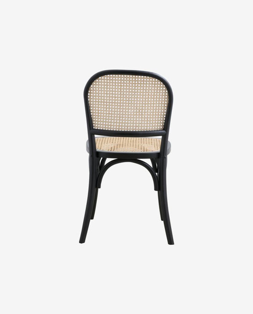 Nordal WICKY stol är en elegant möbel som kombinerar modern design med traditionellt hantverk. Tillverkad av hållbart björkträ i en stilren svart finish, denna stol passar perfekt i både kök och matsal. Den flätade sitsen och ryggstödet i rotting ger en naturlig och luftig känsla samtidigt som den erbjuder god komfort.