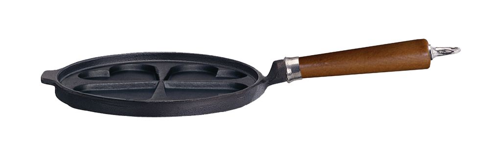 Ronneby Bruk, Plättpanna Gjutjärn 25 cm Hjärtformade Urtag & Brunt Trähandtag
