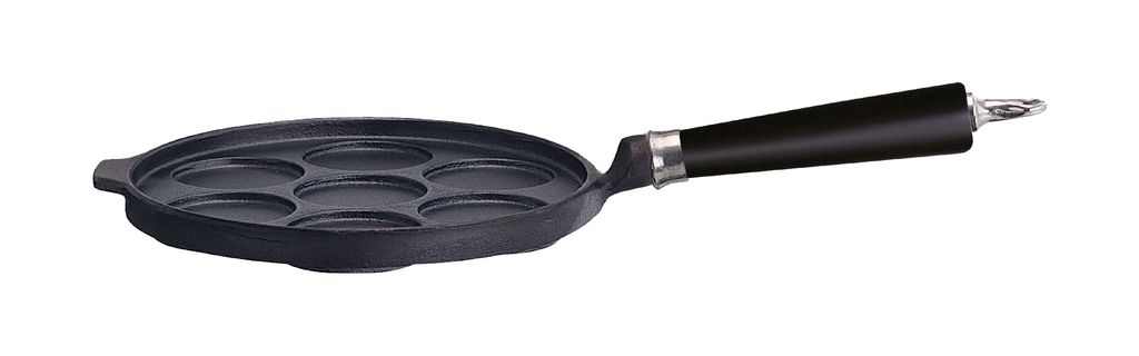 Ronneby Bruk, Plättpanna Gjutjärn 25 cm - 7 Urtag & Svart Trähandtag