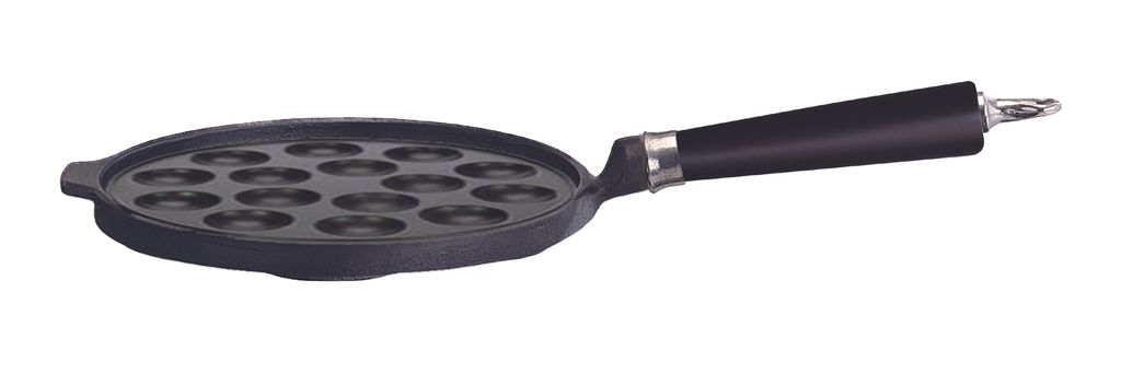 Ronneby Bruk, Poffertjespanna Gjutjärn 25 cm - 15 Urtag & Svart Trähandtag