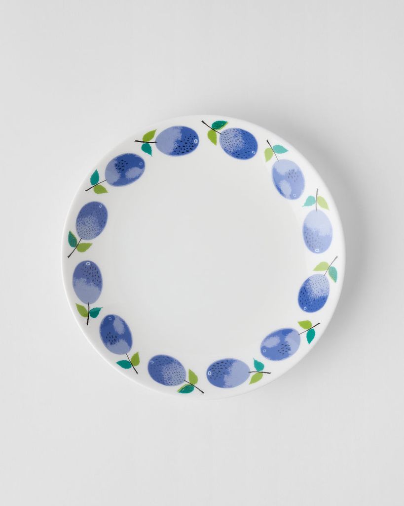 Gustavsberg PRUNUS tallrik 18 cm utan bräm är en ljuvlig kombination av lekfull estetik och tidlös design. Med de ikoniska blå plommonen på vit botten – signerade Stig Lindberg – blir varje måltid en färgglad hyllning till svensk formgivning. Den mindre storleken gör denna tallrik perfekt för frukost, dessert eller eftermiddagsfika, och ger din dukning en varm retrokaraktär med modern känsla.