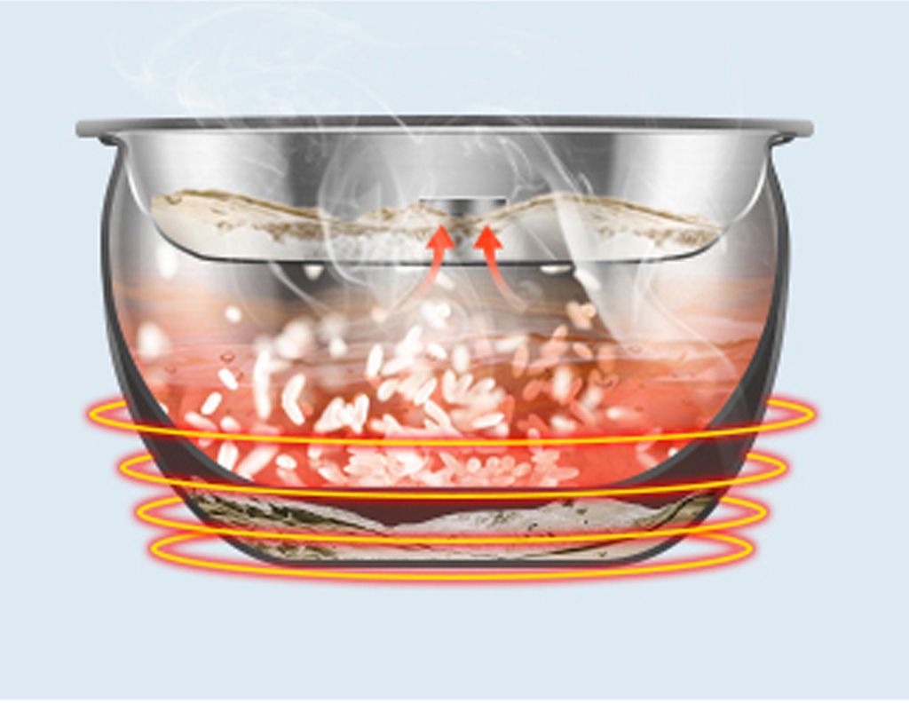 Risinsats i rostfritt stål – för både ångkokning och lågkolhydratläge.