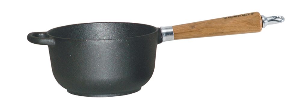 Tack vare gjutjärnets utmärkta värmelagring och -fördelning tillagas dina såser och mindre rätter jämnt och kontrollerat. Den fungerar på alla typer av spisar, inklusive induktion, och har en hällvänlig kant som underlättar servering utan spill. En liten men kraftfull hjälpreda i köket.