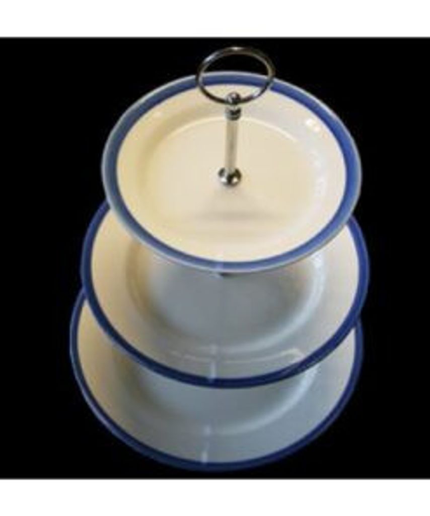 Kakfatet är uppbyggt av tre tallrikar i hållbart benporslin, sammansatta med ett stabilt och elegant metallställ. Varje tallrik har ett diskret bräm som ger en fin inramning av det du serverar och förhindrar att godsakerna glider av.